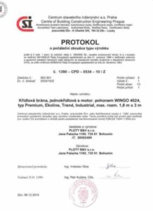 Protokol o zkoušce typu výrobku – brána jednokřídlová s pohonem NICE-WINGO
